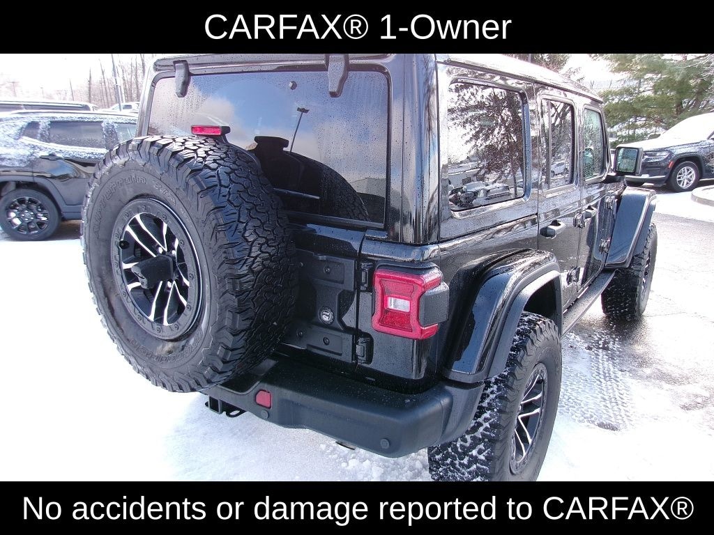 Clean CARFAX. CARFAX One-Owner. Certified. Black Clearcoat 2025 Jeep Wrangler Rubicon X 4WD 8-Speed Automatic 2.0L I4 DOHC