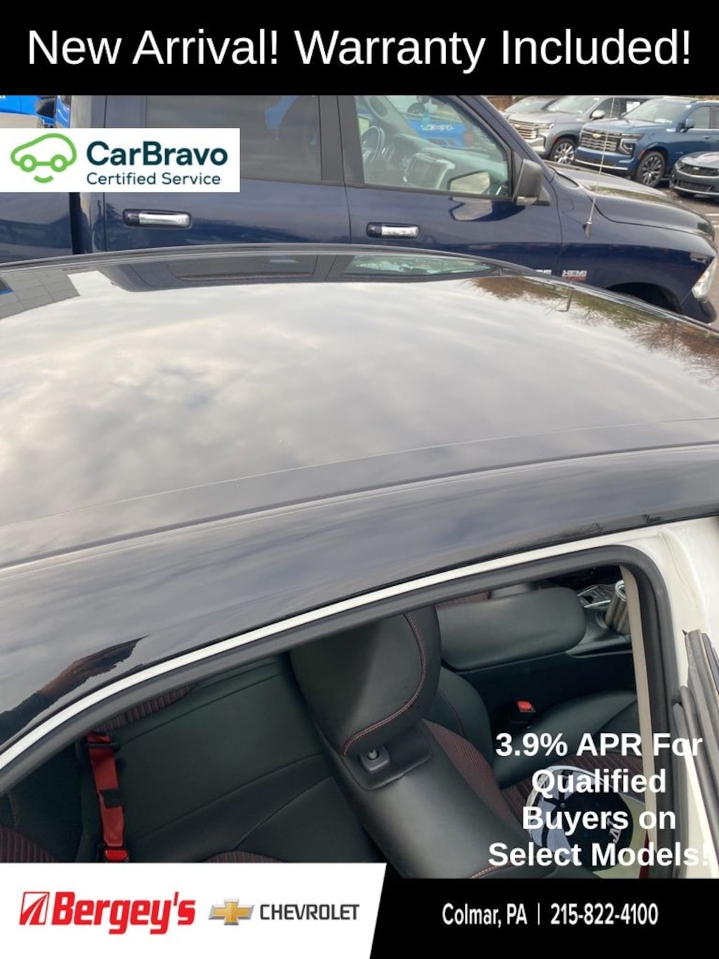 CarBravo Limited Bumper-to-Bumper Warranty When you choose a certified used vehicle less than 10 model years old and with less than 100,000 miles, youâll get 6-month/6,000-mile * limited bumper-to-bumper warranty coverage with no deductible. Ownership Benefits: *Courtesy Transportation *24-Hour roadside assistance *1-month trial of Onstar Connected Services or Onstar Guardian app *3-month trial of SiriusXM *Support from one of the largest nationwide service networks *