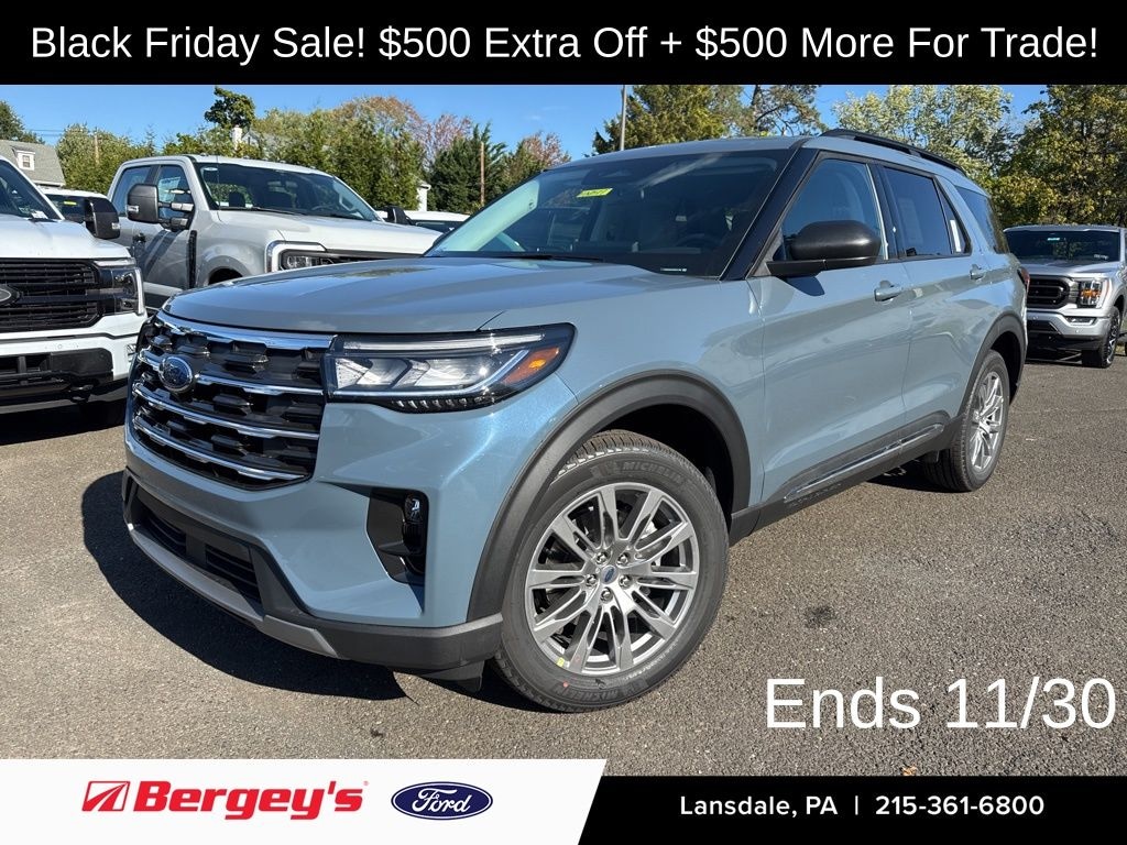Vapor Blue Metallic 2025 Ford Explorer Active 4WD 10-Speed Automatic 2.3L EcoBoost I-4 4WD, Active Comfort Package, Front Fascia, Heated ActiveX Seating Material Captain's Chairs, Heated front seats, Heated Steering Wheel, Navigation System, Remote Start System, Second Row HVAC Controls, Universal Garage Door Opener (UGDO).