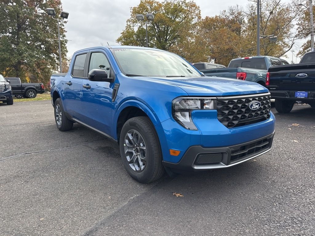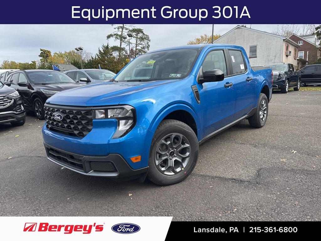 Velocity Blue 2025 Ford Maverick XLT AWD CVT 2.5L I-4 Hybrid 2.5L I-4 Hybrid, 400W Inverter w/USB Console Rear, Equipment Group 301A, Heated Mirror w/Painted Black Skull Caps, Heated Seats, LED Box Lighting, Remote Start System, Soft Vinyl Wrapped Heated Steering Wheel, XLT Luxury Package.