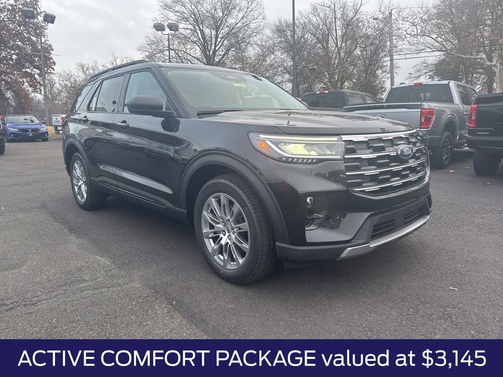 Agate Black Metallic 2026 Ford Explorer Active 4WD 10-Speed Automatic 2.3L EcoBoost I-4 4WD, 8 USB Ports, Active Badging, Active Comfort Package, Active Noise Cancellation, Black Roof-Rack Side Rails, Equipment Group 200A Standard Package, Front Fascia, Heated ActiveX Seating Material Captain's Chairs, Heated Steering Wheel, Manual-Folding Sideview Mirrors, Power Liftgate, Remote Start System, Unique Cloth Heated Captain's Chairs, Vinyl-Wrapped Steering Wheel.