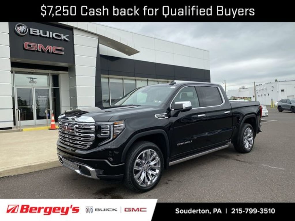 Onyx Black 2025 GMC Sierra 1500 Denali 4WD 10-Speed Automatic EcoTec3 5.3L V8 Price includes: $1500 - Bonus Cash. Exp. 11/03/2025 $2750 - Purchase Allowance. Exp. 11/03/2025 $3000 - Trade Assistance. Exp. 11/03/2025