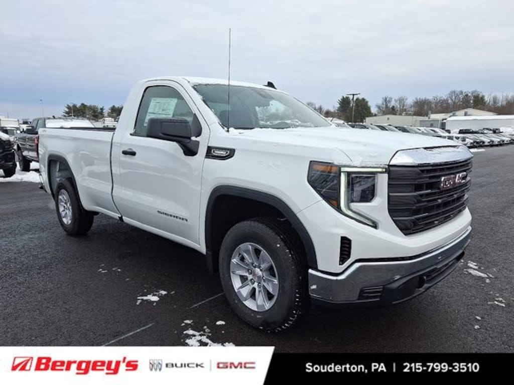 Summit White 2026 GMC Sierra 1500 Pro 4WD 8-Speed Automatic 2.7L I4 Turbocharged DOHC 16V LEV3-SULEV30 310hp Price includes: $1750 - Bonus Cash. Exp. 04/30/2026 $1750 - Purchase Allowance. Exp. 04/30/2026 $3500 - Trade Assistance. Exp. 04/30/2026