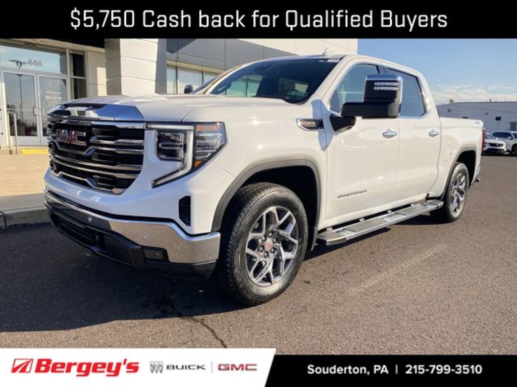 Summit White 2026 GMC Sierra 1500 SLT 4WD 10-Speed Automatic EcoTec3 6.2L V8 Price includes: $1500 - Purchase Allowance. Exp. 01/02/2026 $250 - Bonus Cash. Exp. 01/02/2026 $3500 - Trade Assistance. Exp. 01/02/2026 $500 - Bonus Cash. Exp. 01/02/2026