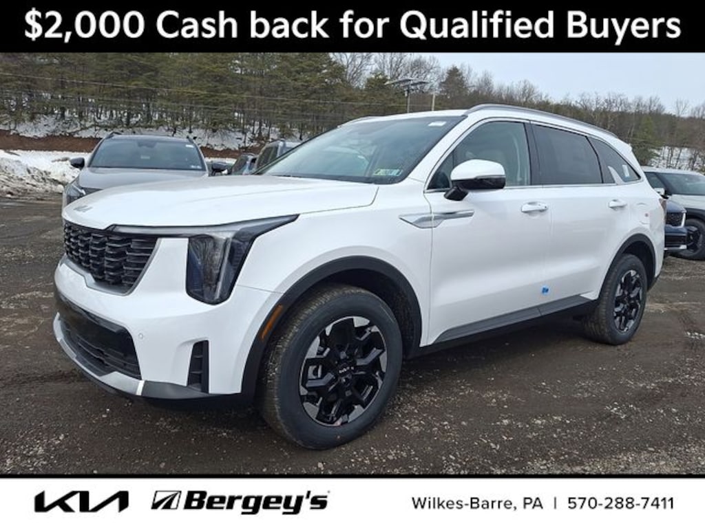 Glacial White Pearl 2026 Kia Sorento S AWD 8-Speed Automatic 2.5L I4 DGI DOHC 16V LEV3-SULEV30 191hp AWD.