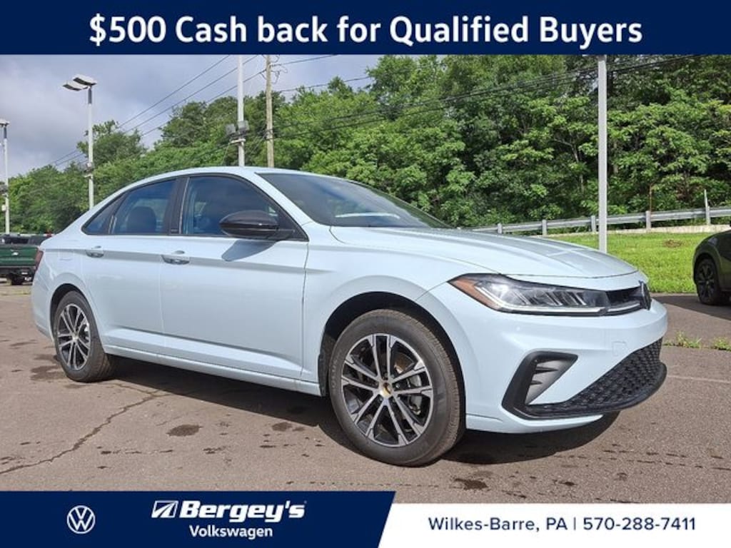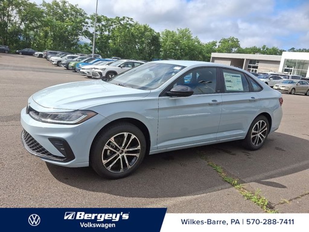 Monument Gray 2025 Volkswagen Jetta 1.5T Sport FWD 8-Speed Automatic with Tiptronic 1.5L I-4 DI DOHC Turbocharged Titan Black Cloth.