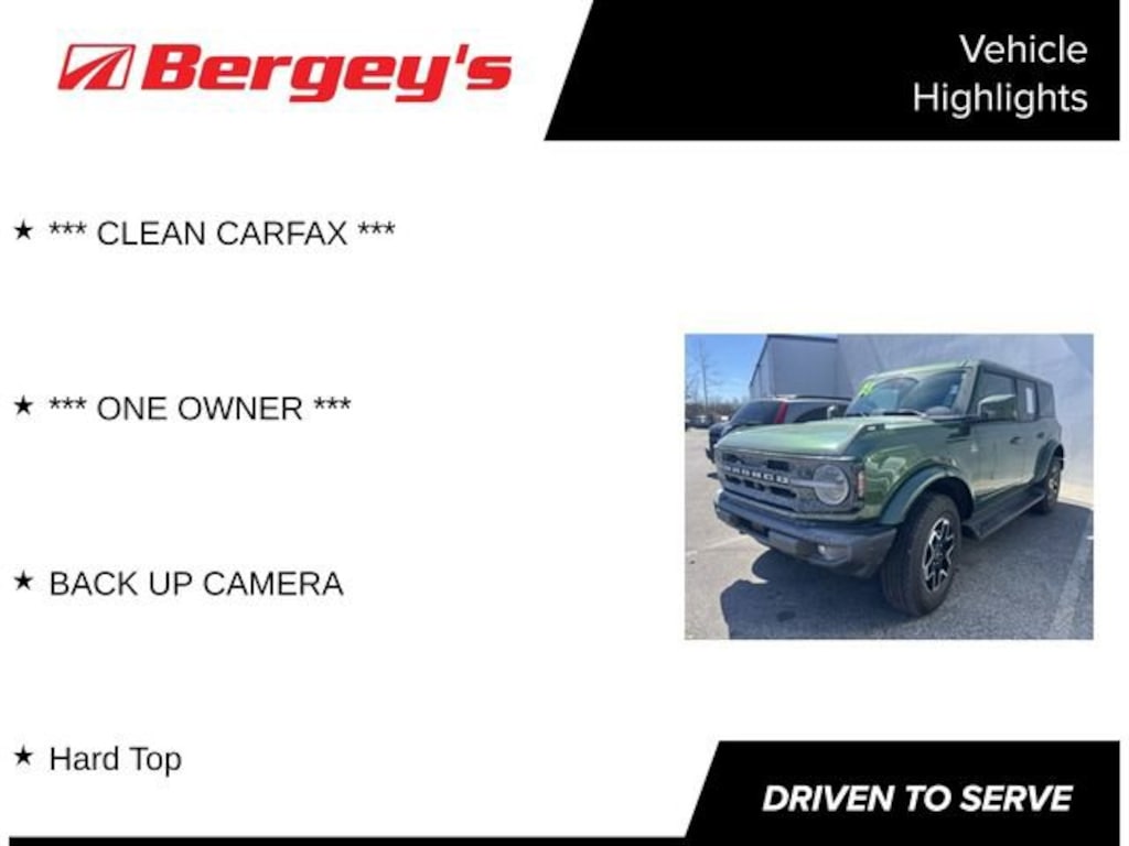 Recent Arrival! *** CLEAN CARFAX ***, *** ONE OWNER ***, BACK UP CAMERA, Hard Top.2025 Green Metallic Ford Bronco 4WD 2.7L EcoBoost V6 10-Speed Automatic