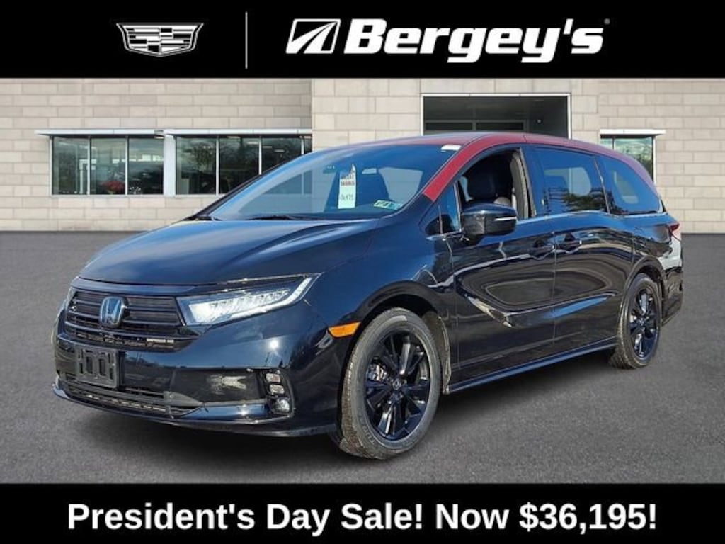 Power Liftgate, Power moonroof, 3.61 Axle Ratio, 3rd row seats: split-bench, 4-Wheel Disc Brakes, 7 Speakers, A/V remote: CabinControl, ABS brakes, Adaptive Cruise Control: Adaptive Cruise Control (ACC) with Low-Speed Follow, Air Conditioning, Alloy wheels, AM/FM radio: SiriusXM, Anti-whiplash front head restraints, Apple CarPlay/Android Auto, Auto High-beam Headlights, Auto-dimming Rear-View mirror, Automatic temperature control, Blind Spot Information (BSI) System warning, Brake assist, Bumpers: body-color, Delay-off headlights, Driver door bin, Driver vanity mirror, Driver's Seat Mounted Armrest, Dual front impact airbags, Dual front side impact airbags, Electronic Stability Control, Exterior Parking Camera Rear, Four wheel independent suspension, Front anti-roll bar, Front Bucket Seats, Front dual zone A/C, Front fog lights, Front reading lights, Fully automatic headlights, Garage door transmitter: HomeLink, Heated door mirrors, Heated Front Bucket Seats, Heated front seats, Illuminated entry, Knee airbag, Lane departure: Lane Keeping Assist System (LKAS) active, Leather Seat Trim, Leather steering wheel, Low tire pressure warning, Memory seat, Occupant sensing airbag, Outside temperature display, Overhead airbag, Overhead console, Panic alarm, Passenger door bin, Passenger seat mounted armrest, Passenger vanity mirror, Power door mirrors, Power driver seat, Power passenger seat, Power steering, Power windows, Radio data system, Radio: 160-Watt AM/FM/HD/SiriusXM Audio System, Rear air conditioning, Rear anti-roll bar, Rear reading lights, Rear seat center armrest, Rear window defroster, Rear window wiper, Reclining 3rd row seat, Remote keyless entry, Security system, Speed control, Speed-sensing steering, Speed-Sensitive Wipers, Split folding rear seat, Spoiler, Steering wheel mounted audio controls, Tachometer, Telescoping steering wheel, Tilt steering wheel, Traction control, Trip computer, Turn signal indicator mirrors, Variably intermittent wipers, Wheels: 19 Gloss Black Alloy, 1-OWNER, CLEAN CARFAX, LOCALLY OWNED, NEW PA INSPECTION, PROFESSIONAL DETAIL, Power Liftgate, Power moonroof. Clean CARFAX. CARFAX One-Owner. Maroon 2024 Honda Odyssey Sport FWD 10-Speed Automatic 3.5L V6 SOHC i-VTEC 24V