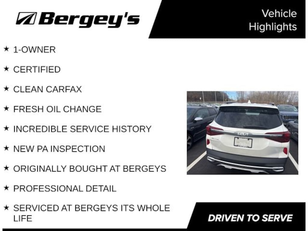 Snow White Pearl 2023 Kia Seltos S FWD CVT 2.0L I4 MPI 1-OWNER, CERTIFIED, CLEAN CARFAX, FRESH OIL CHANGE, INCREDIBLE SERVICE HISTORY, NEW PA INSPECTION, ORIGINALLY BOUGHT AT BERGEYS, PROFESSIONAL DETAIL, SERVICED AT BERGEYS ITS WHOLE LIFE.