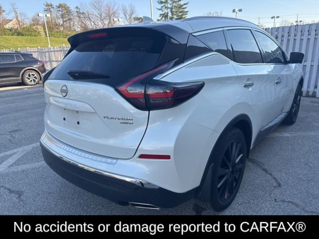 CVT with Xtronic, AWD. Clean CARFAX. Pearl White Tricoat 2023 Nissan Murano Platinum AWD CVT with Xtronic 3.5L V6 DOHC 24V