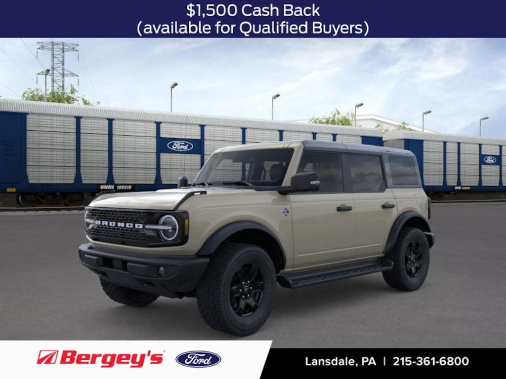 New Price! Desert Sand 2025 Ford Bronco Outer Banks 4WD 10-Speed Automatic 2.3L EcoBoost I-4 360-Degree Camera, Adaptive Cruise Control, Equipment Group 314A Lux Package, Evasive Steering Assist, Front Parking Sensors, Hard Top Sound Deadening Headliner, Information on Demand Panel, Radio: B&O Sound System by Bang & Olufsen, Rear-Window Defroster & Washer, Shadow Black-Painted Hard Top, Sideview Mirrors, Universal Garage Door Opener.